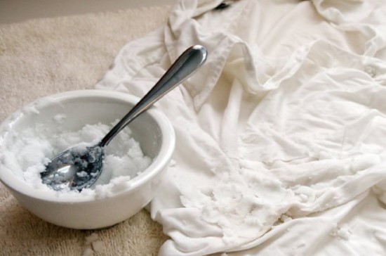 Iskoristite sredstvo za pranje posuđa. Dovoljno je da nanesete malu količitu i potrljate. Postoje i drugi načini: pospite so na tkaninu ili nanesite malu količinu krede i ostavite oko sat vremena, a nakon toga samo oduvati.